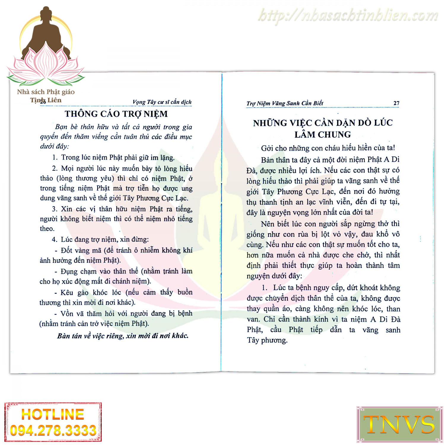 3. Ba Yếu Tố Cho Việc Trợ Niệm Thành Công 3.1 Ba hành trang tín, nguyện, hạnh của bản thân người vãng sanh phải đầy đủ, lúc bình thường phải dặn dò người nhà những điều cần chú ý khi vãng sanh. Ngẫu Ích Đại sư nói rằng: “Vãng sanh được hay không là hoàn toàn do có tín nguyện hay không, phẩm vị cao hay thấp là hoàn toàn do việc trì danh sâu hay cạn”.